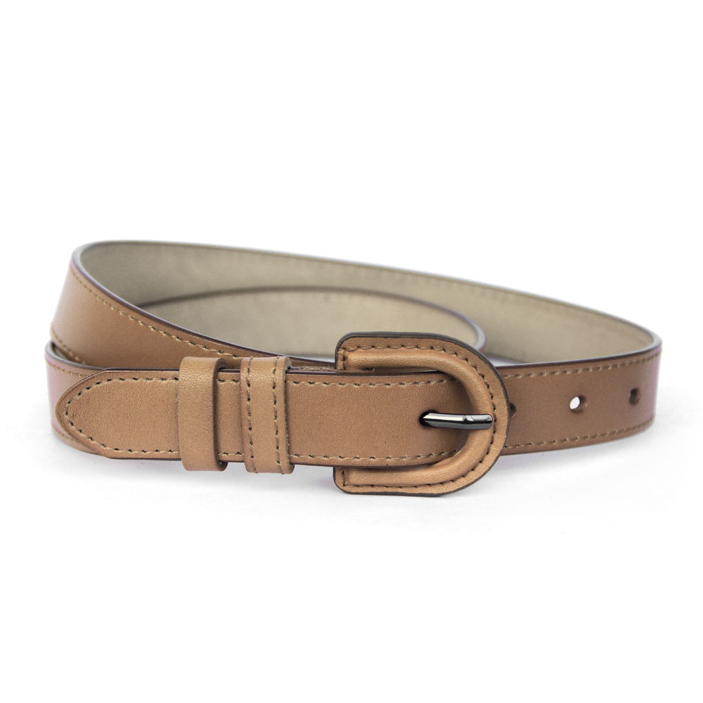 Женский ремень из натуральной кожи. Прекрасно держит форму и не теряет внешний вид. Частично прошит черной вощеной нитью. Пряжка никелевая глянцевая.