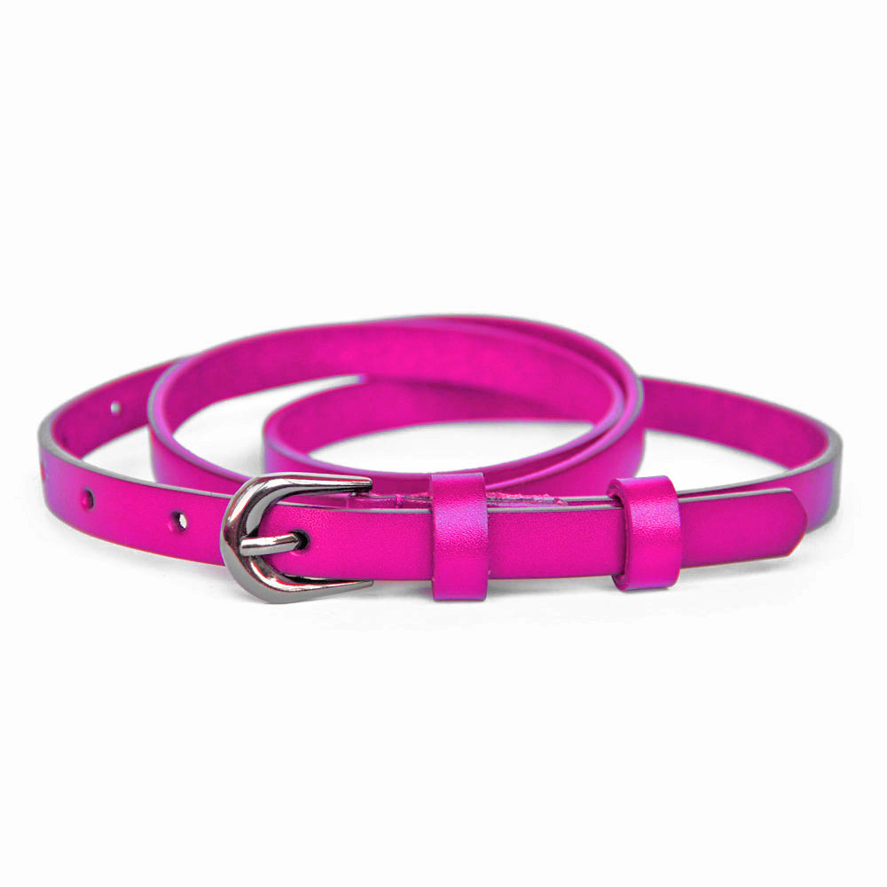 Женский ремень из натуральной кожи. Прекрасно держит форму и не теряет внешний вид. Частично прошит черной вощеной нитью. Пряжка никелевая глянцевая.