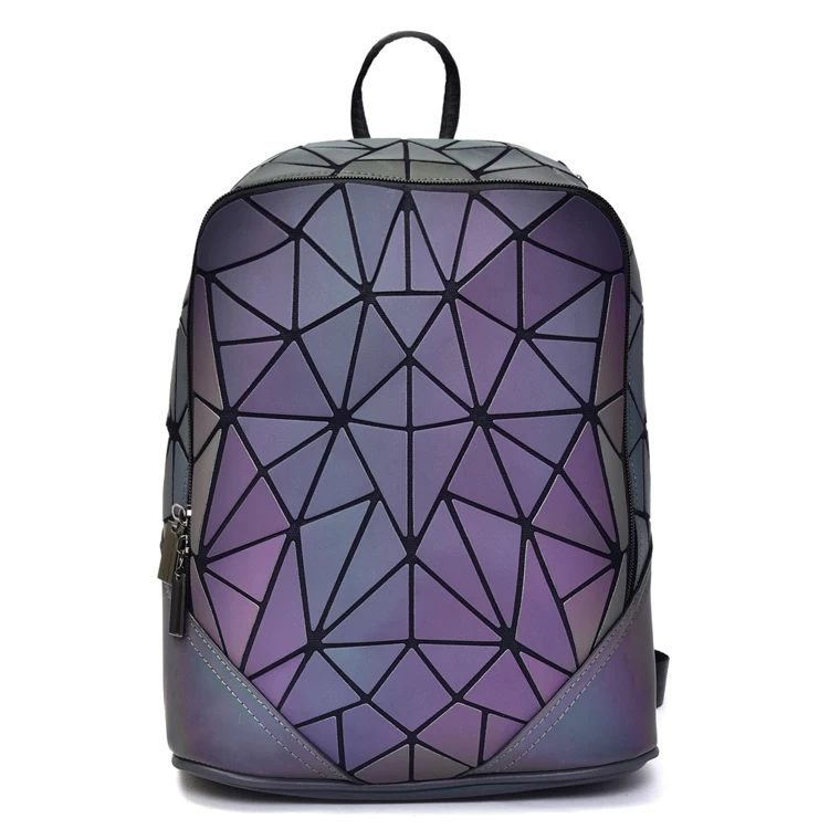 Рюкзак имеет уникальную особенность, при попадании света на его поверхность, он меняет цвет, как хамелеон. А при попадании прямых лучей, таких как фары, фонарики, вспышки камер, рюкзак отражает свет, вместе с тем становится ярким и переливается радужными оттенками. Гибкие вставки между геометрическими пластинами придают гибкости рюкзаку. Рюкзак универсален и подойдёт для всех возрастных категорий.