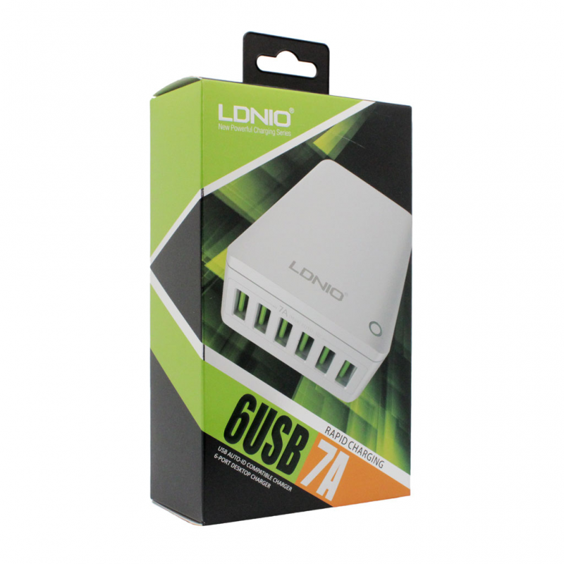 Адаптер LDNIO A6703 6xUSB 7A 1.5м – мощное устройство для одновременной и качественной зарядки портативных мобильных компьютерных устройств.