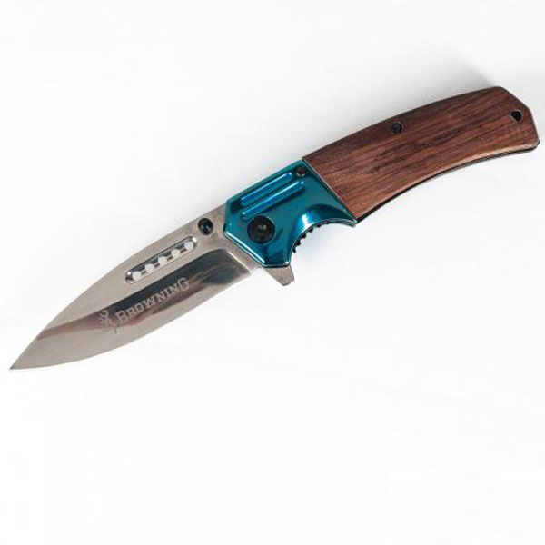 Изготовлен из качественной фабричной 420-ой стали. Рукоятка ножа имеет деревянные накладки для уменьшения веса. Также рукоять оснащена съемной клипсой для ношения на кармане одежды. В этой модели идет замок типа Liner Lock. Открыть нож можно при помощи рычага на клинке или при помощи шпеньков. Шпеньки предназначены для открытия одной рукой, а наличие их с обеих сторон клинка позволяют пользоваться этой системой как правшам, так и левшам. Система Assist работает как доводчик, она помогает раскрыться клинку в рабочее положение за секунду.