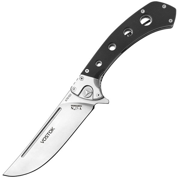 Vostok — это складная версия этнического ножа пчак, пришедшего к нам из Средней Азии. Широкий мощный клинок обладает всей функциональностью нескладного ножа, он прекрасно режет и колет.Рукоять изготовлена из стеклотекстолита G10 — это композитный материал на основе стеклоткани и эпоксидной смолы. Он является очень прочным, влагонепроницаемым и ударостойким. Прекрасно поддается обработке и окрашиванию. Используется повсеместно на всех современных ножах.