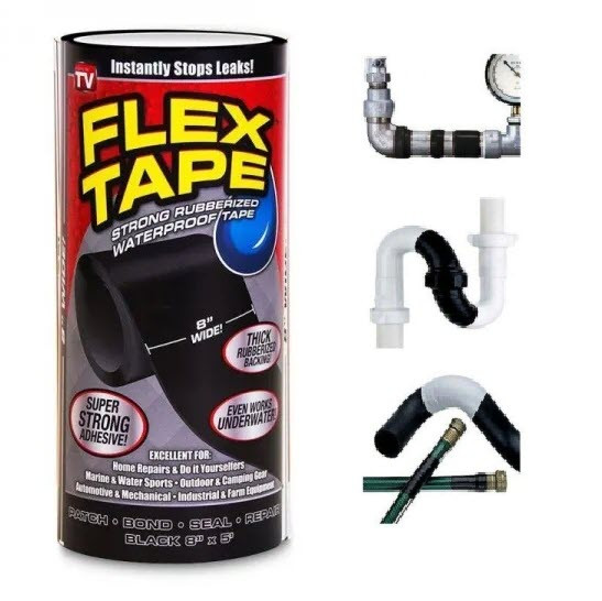 Сверхсильная клейкая лента Flex Tape - это настоящая палочка-выручалочка для решения бытовых чрезвычайных ситуаций. Когда прорвала канализационная труба или образовалась другая утечка, и вода бьет струей во все стороны, действовать нужно быстро и решительно. Удивительная лента склеивает совершенно все, что только можно придумать. Изделие создает эластичный барьер, состоящий из трех слоев. Они плотно скрепляют, запечатывают и ремонтируют что-угодно!