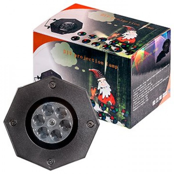 Светодиодный проектор DIY Projection Lam включает в себя 6 мощных светодиодных ламп которые создают чудесный эффект мерцания. Так же в комплекте идут 12 сменных картриджей-картинок на любой вкус.