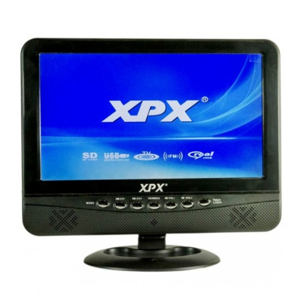 Портативный автомобильный телевизор XPX EA-907D Портативный телевизор - вещь, нужная в каждом доме. Эта модель оснащена цифровым TV-тюнером стандарта DVB-T2, который позволяет просматривать цифровые ТВ-каналы без дополнительных ресиверов и декодеров. Помимо этого, компактный телевизор XPX EA-907D, оснащен интерфейсом для воспроизведения файлов с внешних носителей, таких как USB флешки или TF карты памяти. С цифровым телевизором XPX EA-907D (DVB-T2) вы в любом месте сможете насладиться любимыми телепередачами или записанными фильмами. Данная модель может работать как от обычной домашней розетки, так и от бортовой электросети вашего автомобиля в 12V Современный и универсальный цифровой телевизор XPX EA-907D, привлекает внимание интересным дизайном, отличным качеством сборки и достаточно невысокой ценой.