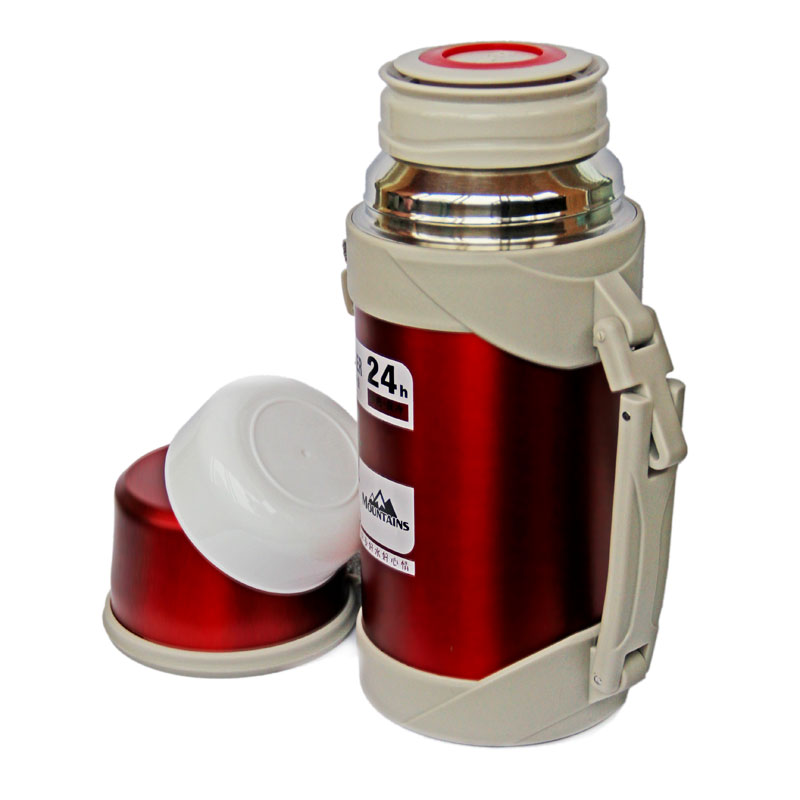 Термос с телескопической ручкой 1.5 литра, держит тепло 24 часа! Подойдет также и для первых блюд, ведь имеет удобное широкое горлышко. Корпус и колба данного термоса металлические. Он имеет удобную ручку для транспортировки, которую можно сложить при нео