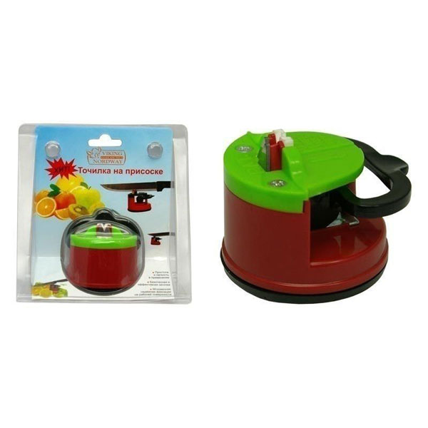 Точилка универсальная на присоске для заточки изделий из стали (ножи, ножницы). Материал затачивающих элементов: твердый сплав + керамика.