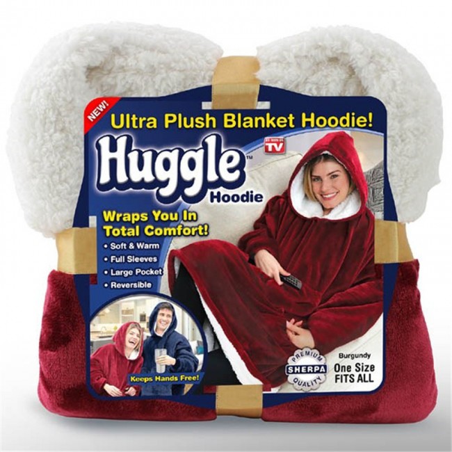 Это комбинация мягкого теплого одеяла и комфортной толстовки с капюшоном. Такая вещь согреет своим теплом от головы до пят. В большой карман можно положить все, что необходимо иметь под рукой. Толстовка сшита из ультра мягкого флиса, имеет один большой размер, чтобы максимально укрыть с головы до ног. Выпускается в двух цветах: синий и бордовый. В ней удобно устроится у телевизора или камина, а также выехать на природу или устроить пикник.