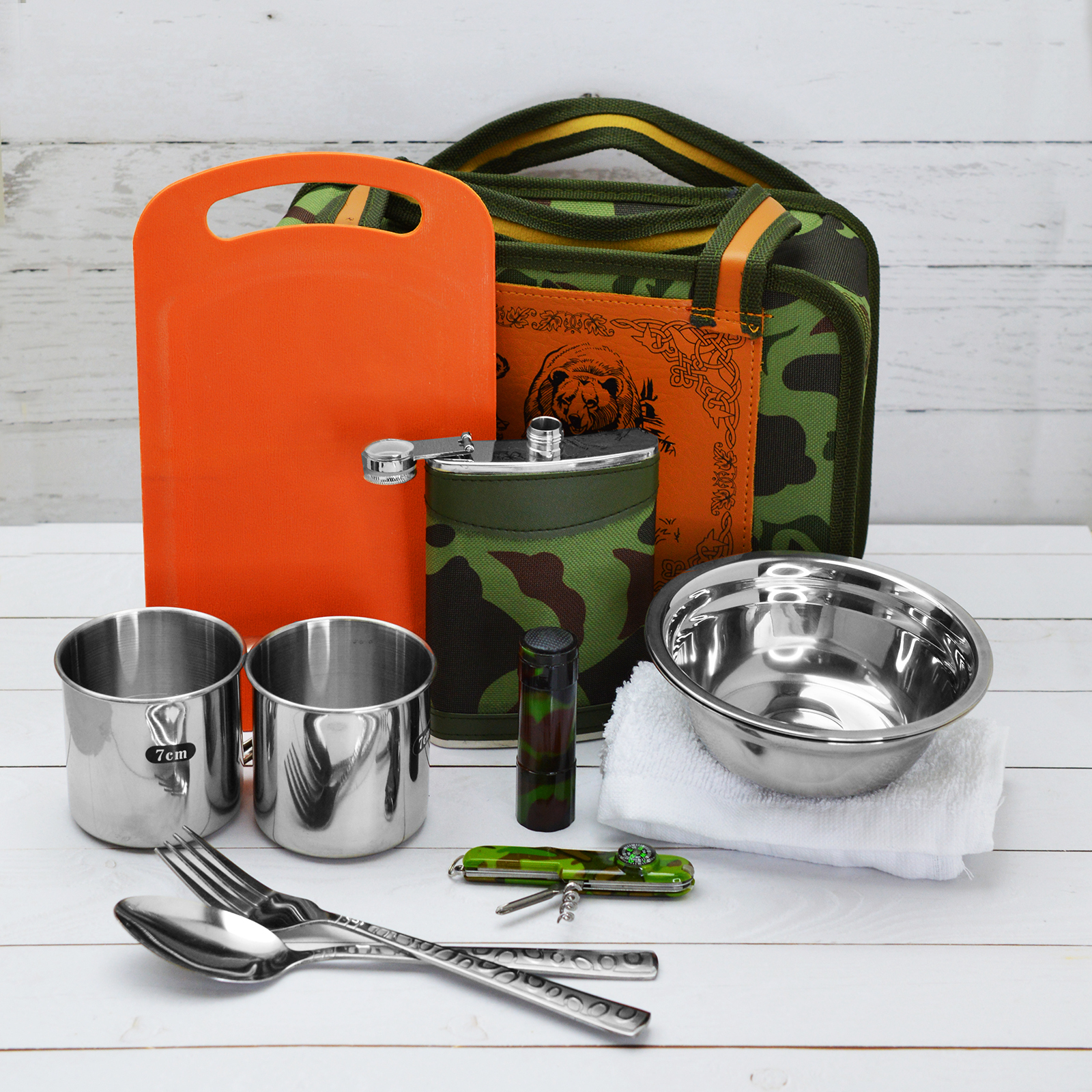 Прекрасный набор посуды для двоих, незаменимый в походе. Посуда сделана из нержавеющей стали марки AISI 304, которая является кислотостойкой и выдерживает краткосрочное поднятие температуры до 900 градусов по Цельсию.
