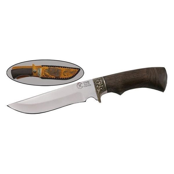 Цвет-Серый металлик Тип-Ножи с фиксированным клинком Производитель-vikingknives Чехол-кожа Длина клинка, мм 148 Толщина клинка, мм 2,2 Общая длина, мм 265 Сталь 95Х18 Твердость стали 58-60 Масса, гр.365