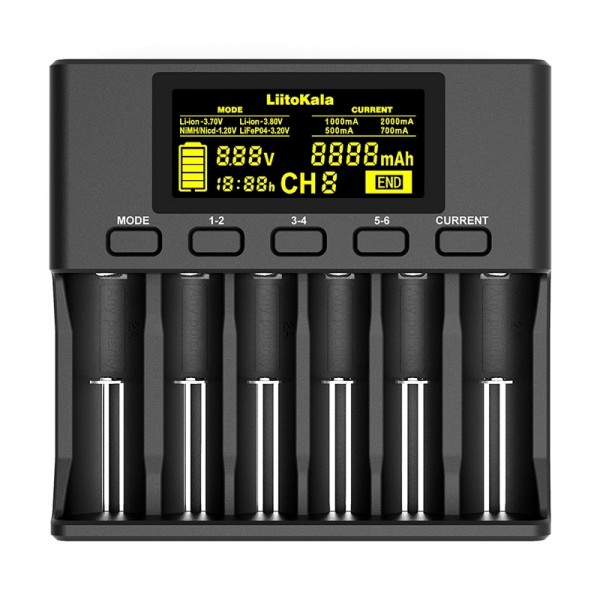 Зарядное устройство LiitoKala Lii-S6 (Черный) – универсальное, шести-канальное, зарядное устройство с информационным дисплеем и регулируемым током заряда. Совместимо со многими цилиндрическими аккумуляторами и автоматически распознает литий-ионные (Li-ion), никель-металлгидридные (Ni-Mh) и никель-кадмиевые аккумуляторы (Ni-Cd).