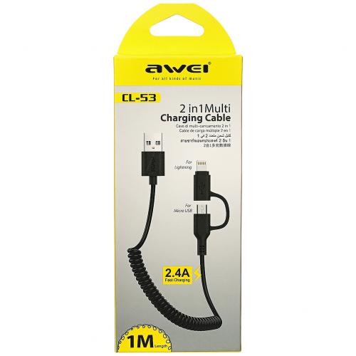 USB кабель Awei CL-53 2 в 1 черный доступен к покупке по низкой цене со склада в Москве с доставкой по всей России и СНГ.